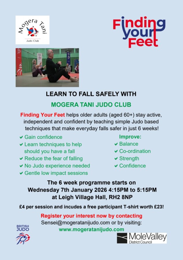 Mogera Tani Judo Club , with the support of MVDC is delighted to offer a fantastic opportunity for adults aged 60+ within Mole valley called Finding your Feet.